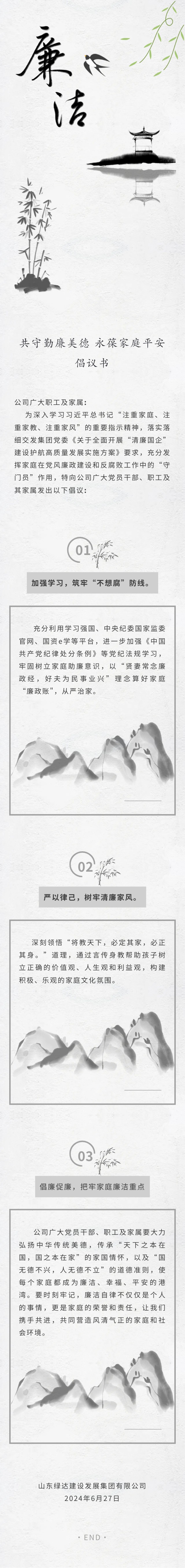 共守勤廉美德永葆家庭平安倡議書